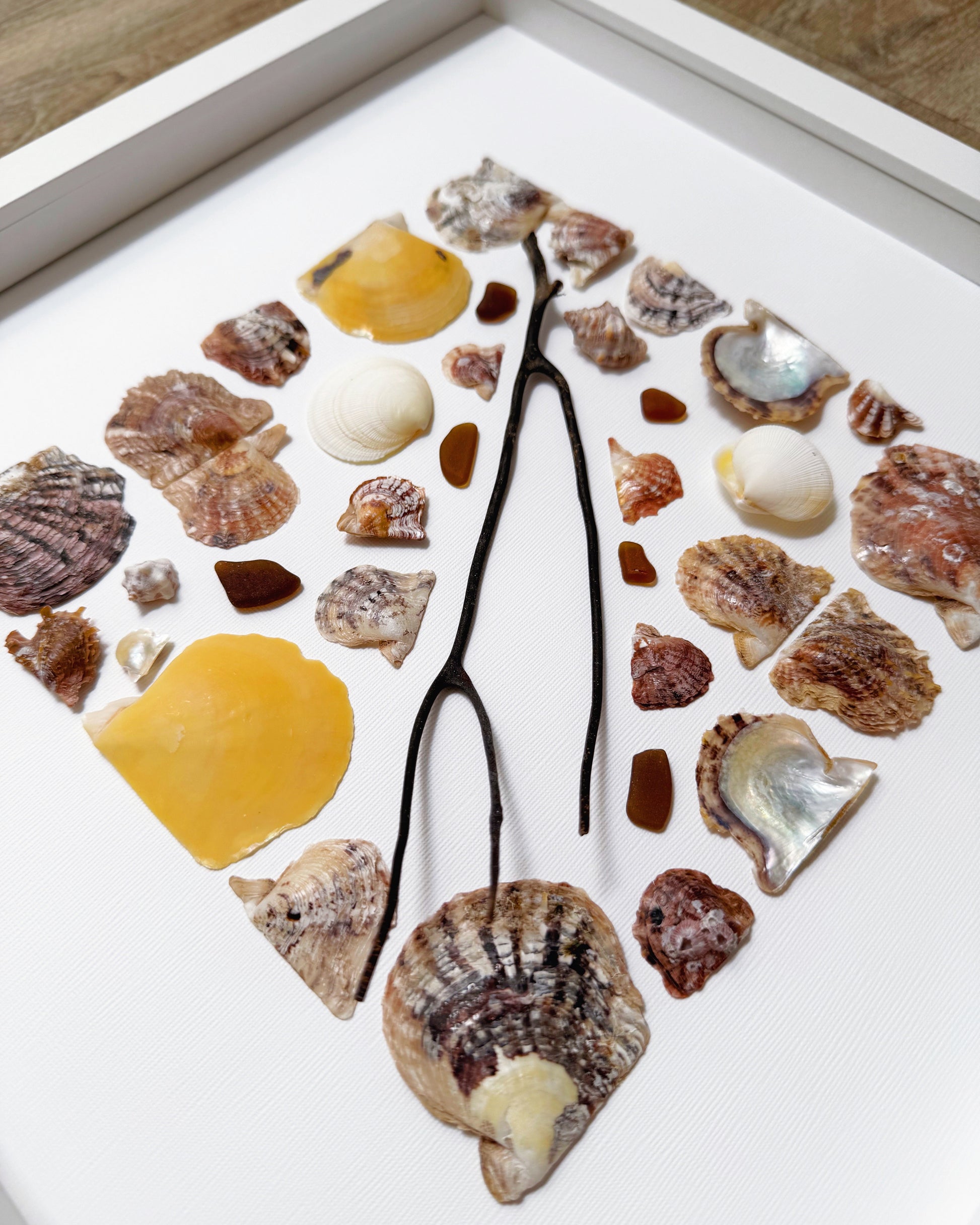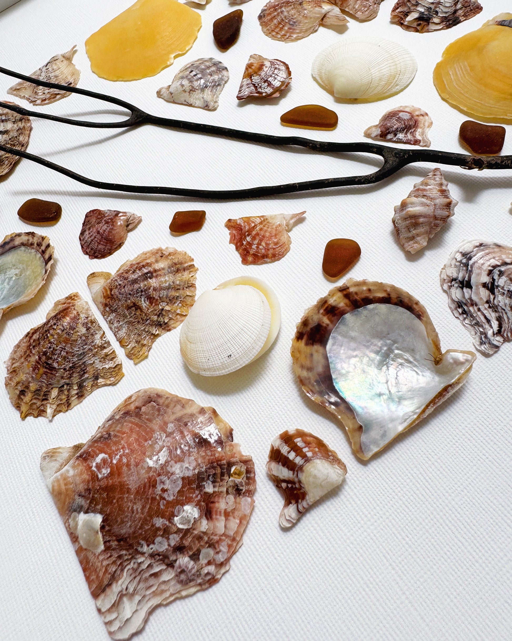 All beachcombing finds are hand picked and ethically sourced from various beaches across South Florida. They have been collected over several months time to ensure a cohesive final product.